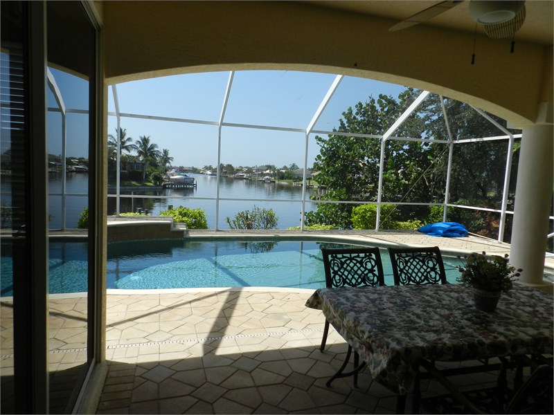 Great view down the wide canal. The large covered patio has table and chairs and a gas grill. The pool has an electric pool heater for cool weather enjoyment. You can sit on the boat dock and enjoy the view over the waterway and see boats going by. This home has internet, access in the private office. cable TV in living room, master bedroom and guest bedroom.