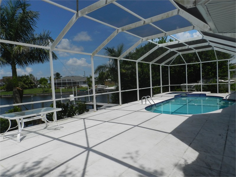 Beautiful large Villa in Southwest Cape Coral, pool faces west. 3 bedrooms/ 2 bath. Over 2000 sf, it offers warm, sunny afternoons and gorgeous sunsets. High ceilings, tiled floors in all rooms.